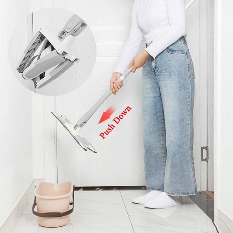 Simulated artificial wringing?One hand holds the handle of the floor mop, the other hand easily push down the floor mop of Lower rod to wring out.sliding repeatedly, the floor mop head can easily be screwed dry