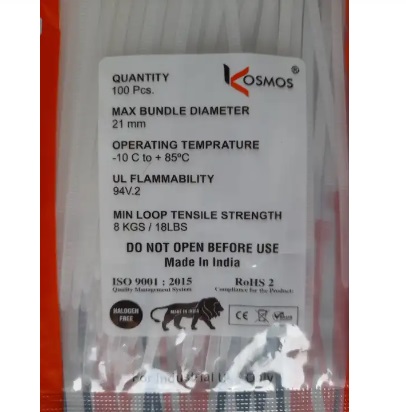 Specifications of Cable Tie 2.5x100mm 100pcs White Plastic Wire Tie(kosmos brand)