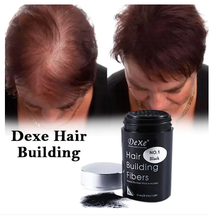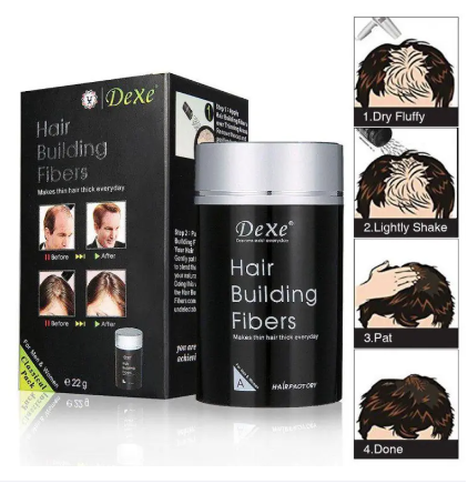 • • Dexe Black Colored Hair Building Fibers for thicker hair.