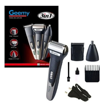 Geemy 3 In 1 Rechargeable Hair Clipper Shaver Nose Trimmer Set - Gm 598