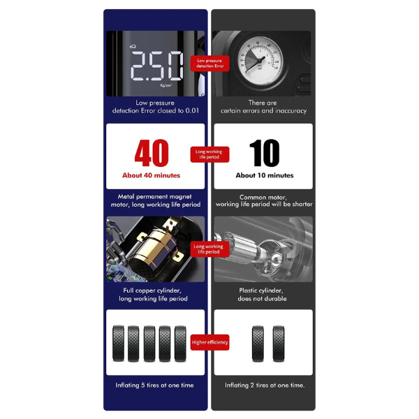 Can switch off automatically when the tires reach the required pressure