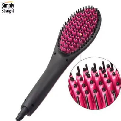 1x Simply Straight - Electric Ceramic hair straightening iron Comb Brush - Black